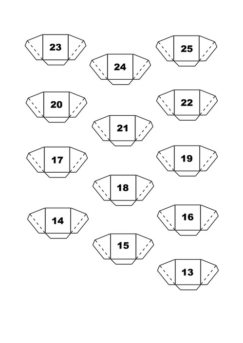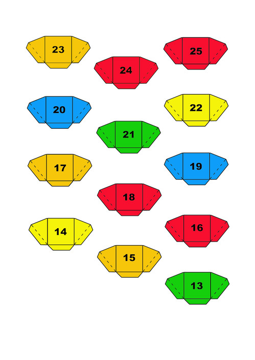 Um Calendário de Natal para colocarem bombons ou rebuçados nas bolsinhas . Deixo aqui as folhas para recortar e construir a cores, ou a preto e branco se quiserem colorir. Para ainda ficar mais bonito coloquem as decorações que deixei em baixo.